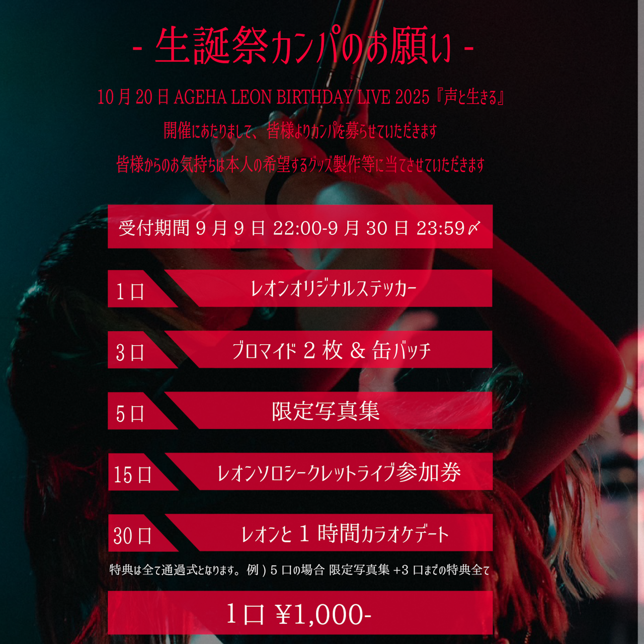 15口 ¥15,000- レオンソロシークレットライブ参加券(5口までの特典)