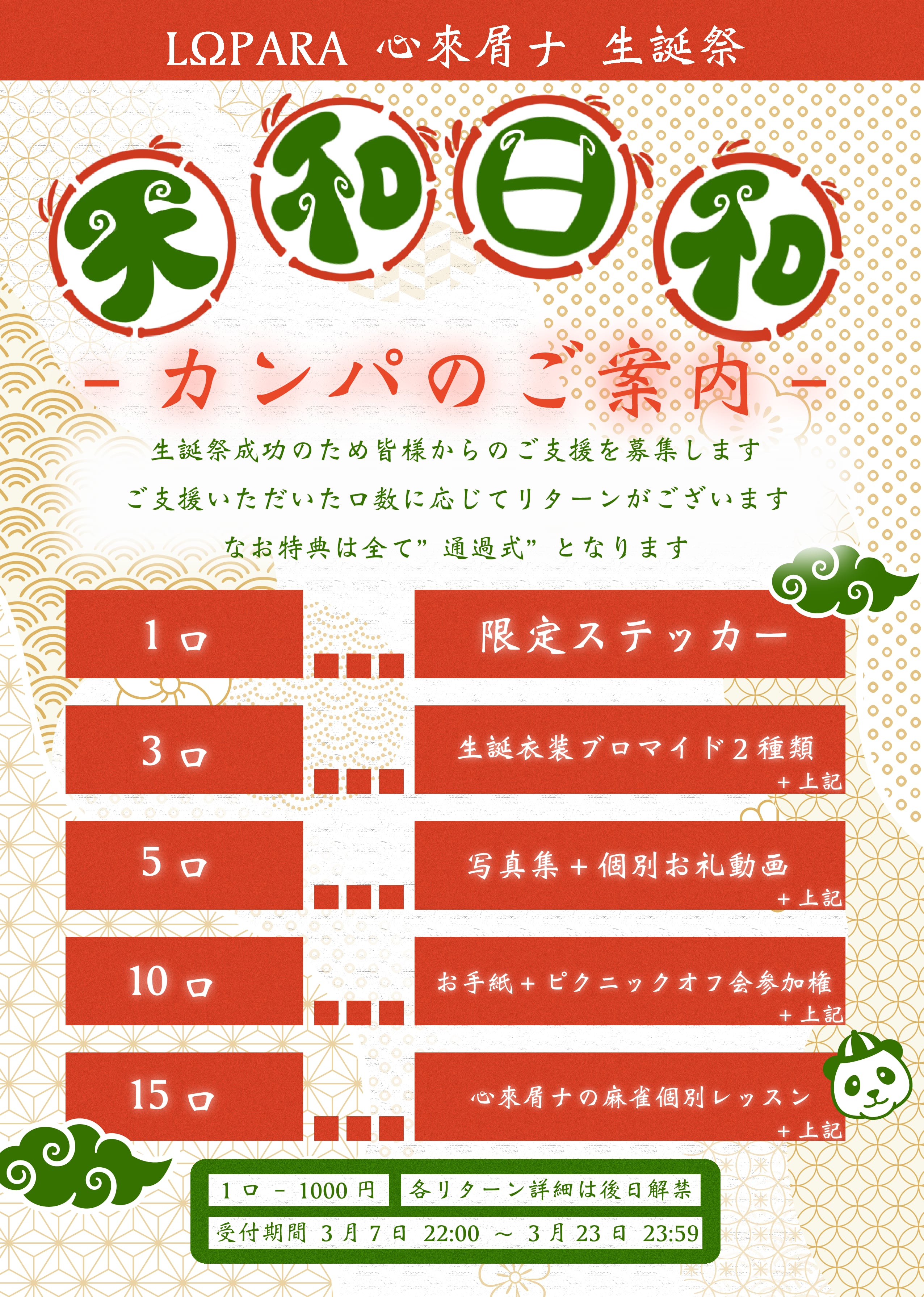 受付期間 : 2026年3月7日 22:00 〜 3月23日 23:59